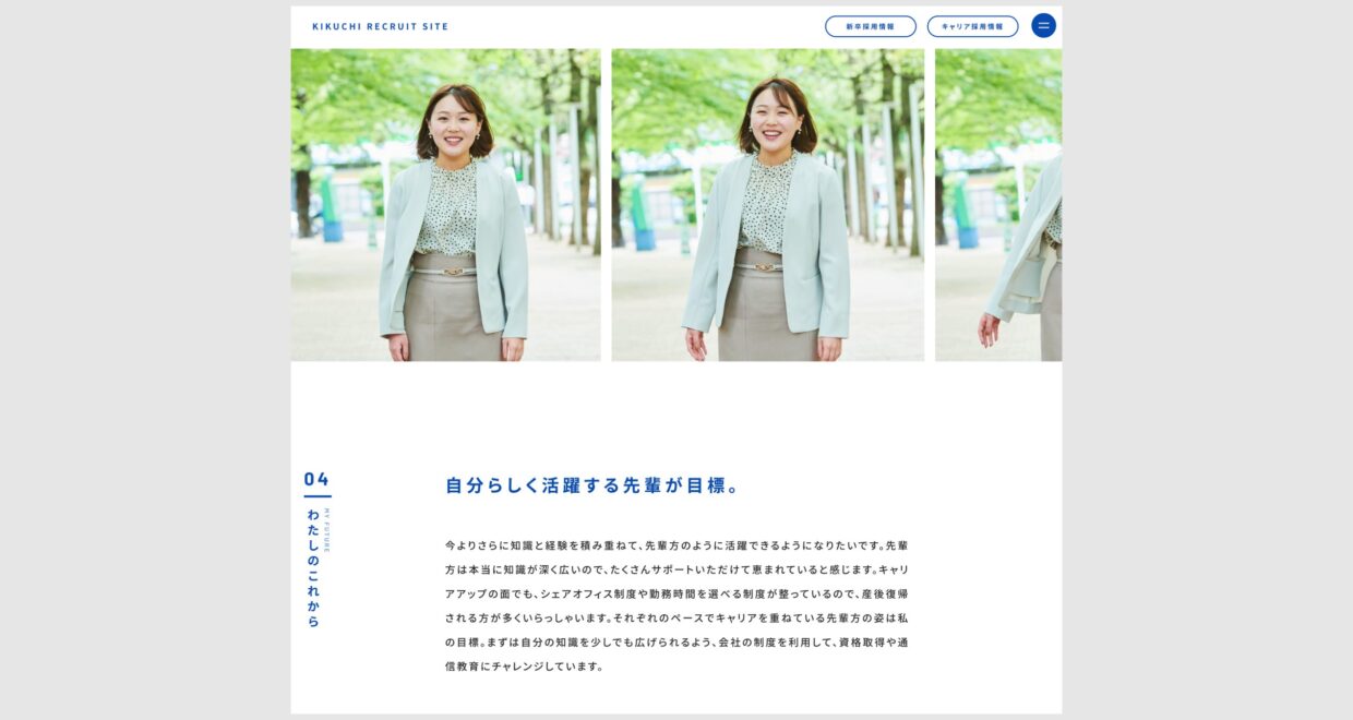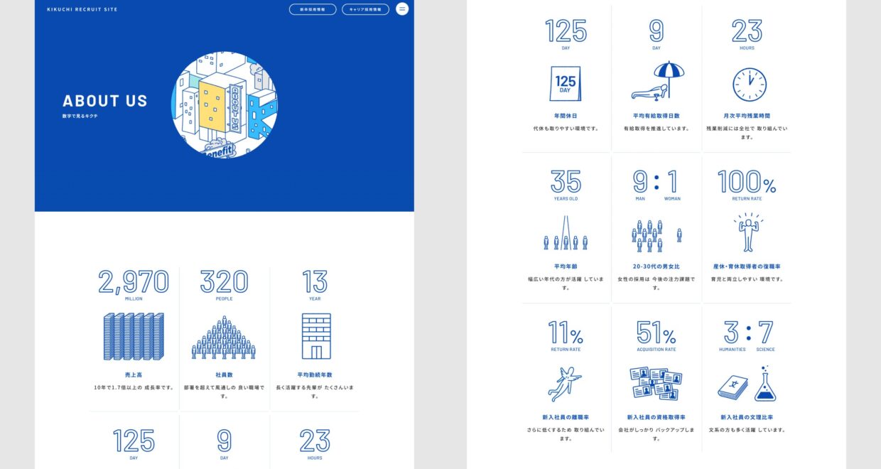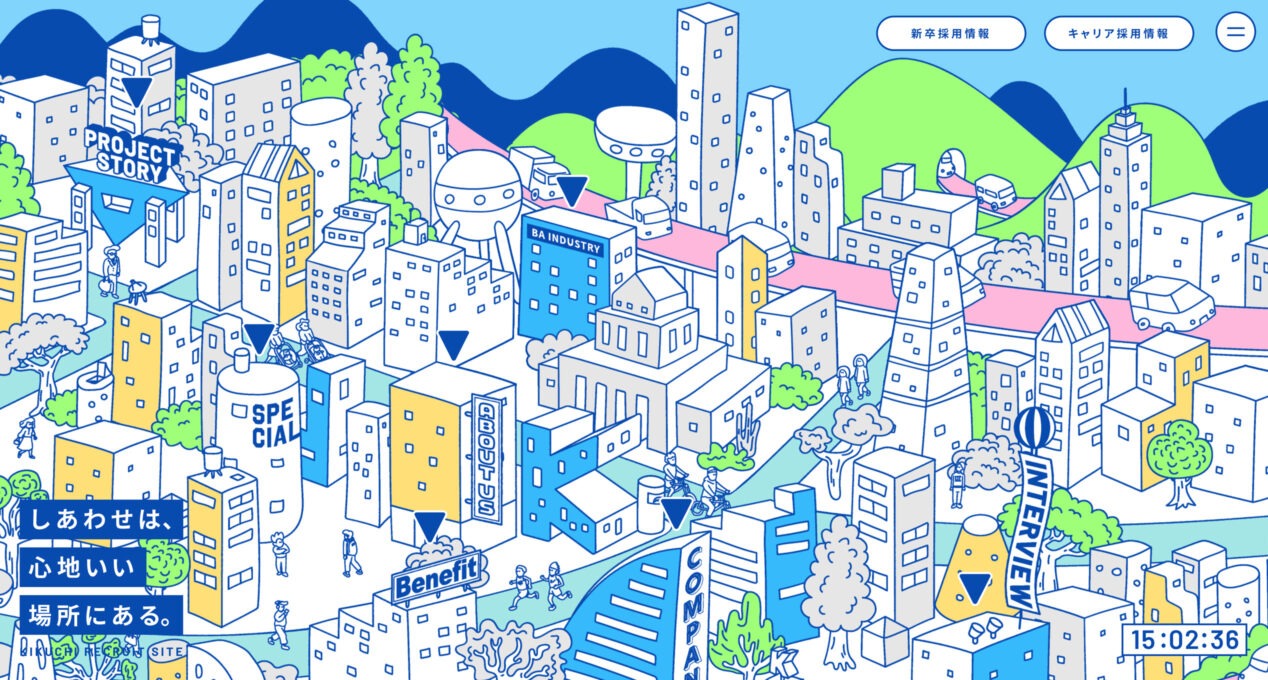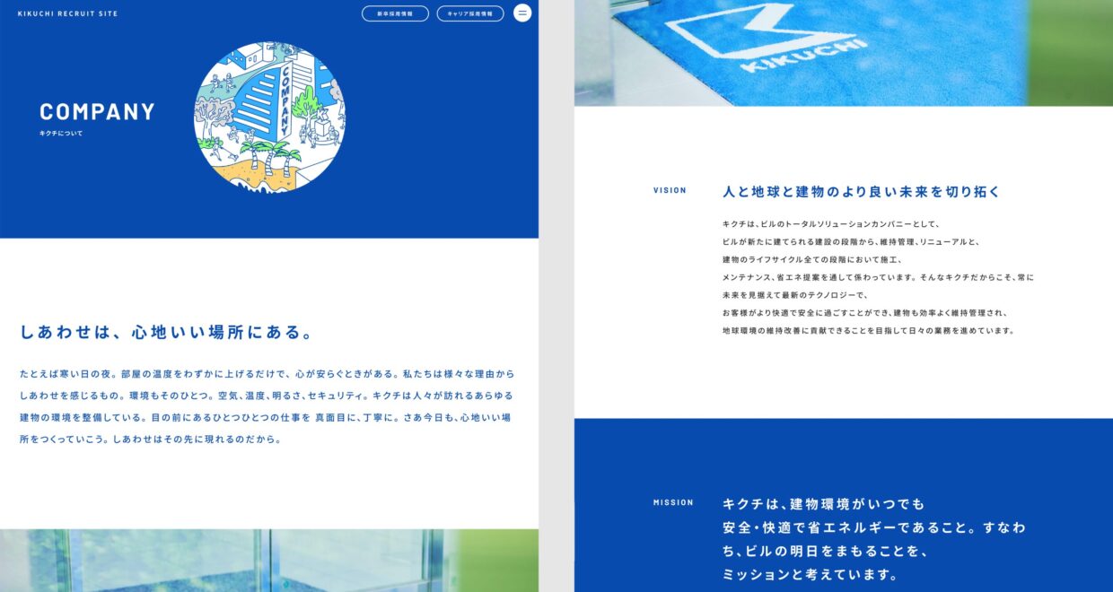 キービジュアルは、人が行き交う街を作り、365日ビルを見守るキクチさまの仕事を朝から夜に変化するアニメーションで表現。サイトを訪れた求職者が興味を持ってくれる仕掛けができたと思います。
