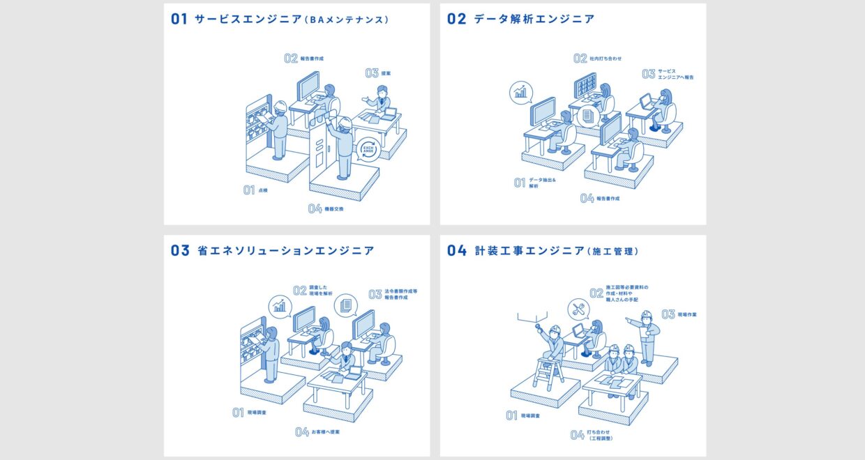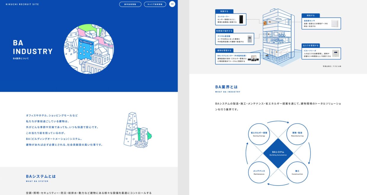 「ビルの明日をまもる」。「人と地球と建物のより良い未来を切り拓く」。このスローガンと理念を求職者への採用メッセージとしてどのように伝えていくのか。また、事業であるBAシステムの設計、保守、運用を求職者へ魅力としてどのように伝えるのか。この点に工夫を凝らしました。